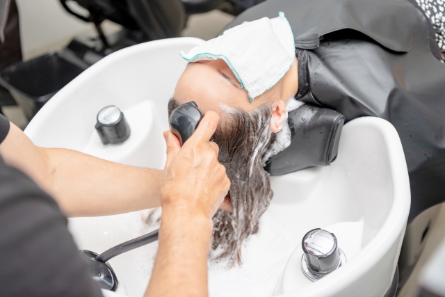 髪と頭皮を中心に、ぬるま湯でしっかり洗います。