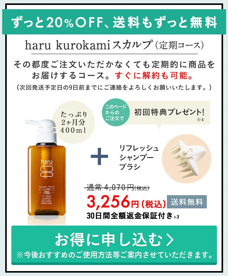 Amazonや楽天などでも購入できますが、一番お得に買えるのはharu公式ストア からの定期購入(20%OFF!の¥3,256税込)です。